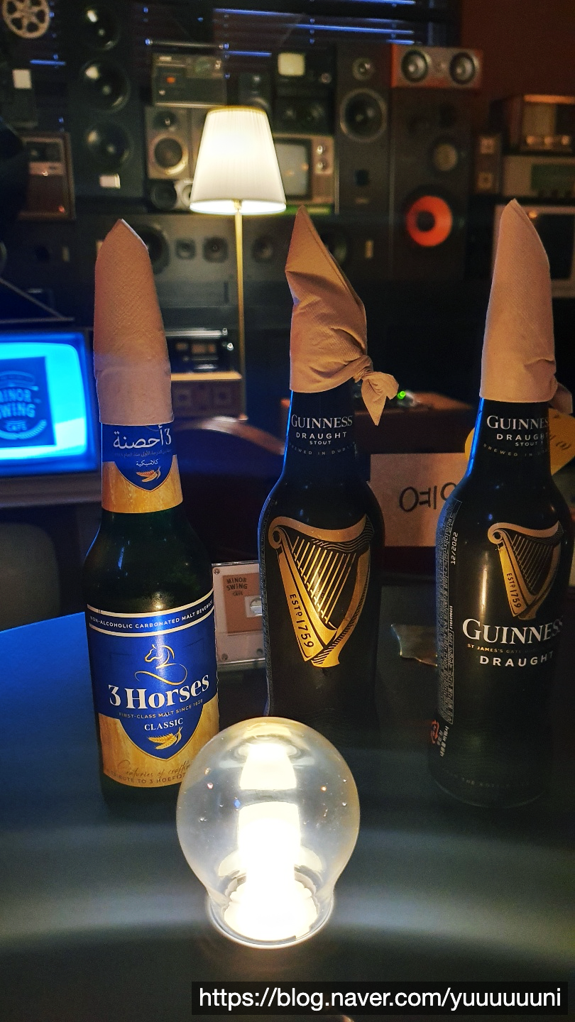곧이어 나온 액주 트리오. 커피도 팔던데, 제가 주문할 때는 사실 커피를 파는지 몰라서 비어 종류를 시켰어요.
