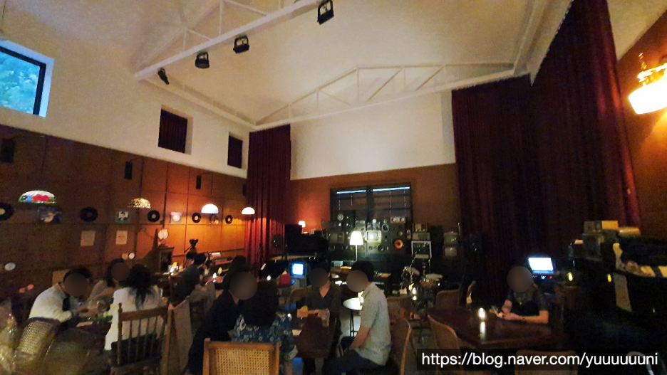 사실 가게가 층고가 높아 시원한 느낌은 들지만 무대 주변이 엄청 넓은 편은 아니라서 굳이 가운데가 아니더라도 시야에 어려움은 없으실 것 같아요.